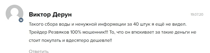 На сторонних сайтах присутствуют преимущественно негативные отзывы, в которых клиенты называют трейдера “мошенником”, а его курсы- “разводиловом”.